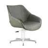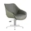 Meet Dawn, a fresh take on a bucket style hairdressing salon chair in Sage Green. A fun and stylish addition to any salon. Inspired by 50’s and 60’s century curved lines and upholstered in a fresh looking Sage Green Upholstery, this round bucket seat, has a minimal contemporary style and, not unimportant, is comfortable to sit in. The seat integrated with the back and lower arm rests is a compact, clean look.