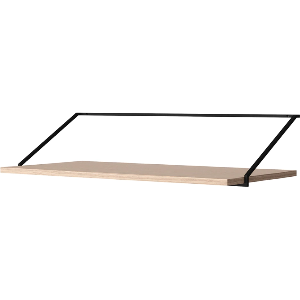 Neat. Serene. Practical. This small desk has multiple functions; as a workbench beneath one of our salon wall mirrors, as a reception desk or as shelve to display your retail items. The minimalist steel bracket is attached to a wall and is derived from the railing of a staircase. The wooden platform, available in natural or stained oak, provides a tangible contrast to the precision metalwork.