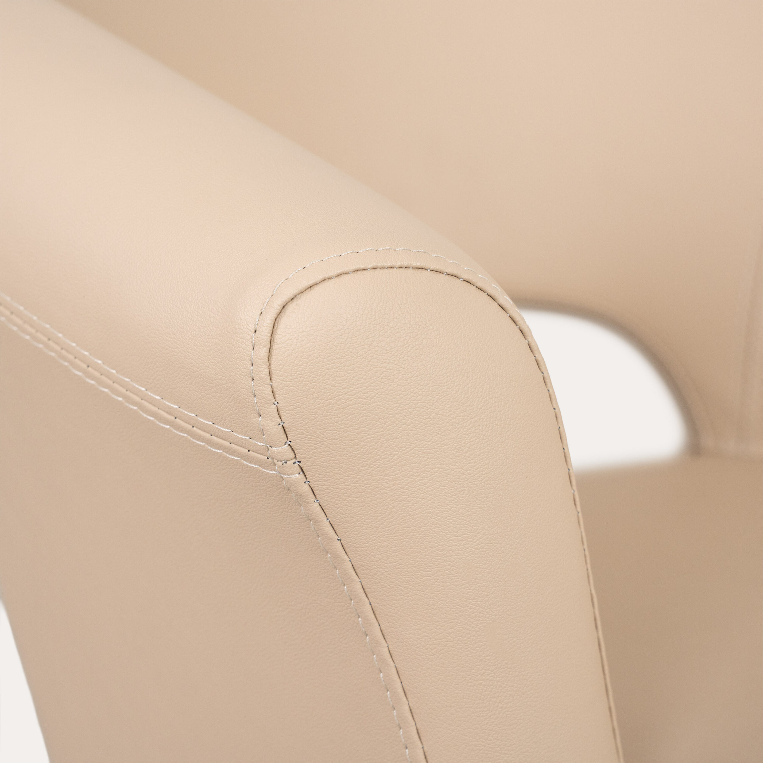 Comfortabele en ergonomische kappersstoel. Zitting van dik, hoogwaardig polyurethaanschuim. Dunne, ronde roestvrijstalen voet voor extra comfort. Zeer solide en stabiel, zonder scherpe hoeken voor eenvoudige reiniging. Vergrendelbare, hoogwaardige hydraulische pomp. Zwarte bekleding en stiksels. Afmetingen: 65 x 70 x 43/58 cm