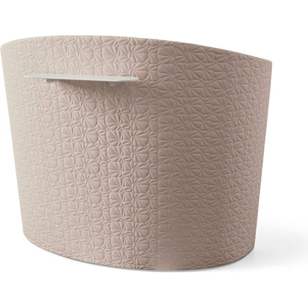 Reception desk with decorated front, a stylish entrance to your salon. Upholstered in LOTUS flower vinyl, with open shelves and a drawer. Available in different sizes.