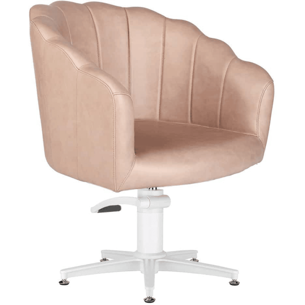 Poppy with its classic curves, scalloped, rounded shape is a true beauty. A curved, cocoon style hairdressing salon chair for a sophisticated look, while a decorative touch is created by the classic scallop shell back. This chair is designed to enlighten your salon interior.