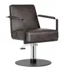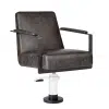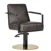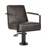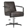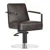 The totally cool salon hairdressing chair stands the test of time, mixing a striking silhouette with textured slate/black upholstery and slimline matte metal black padded arms.